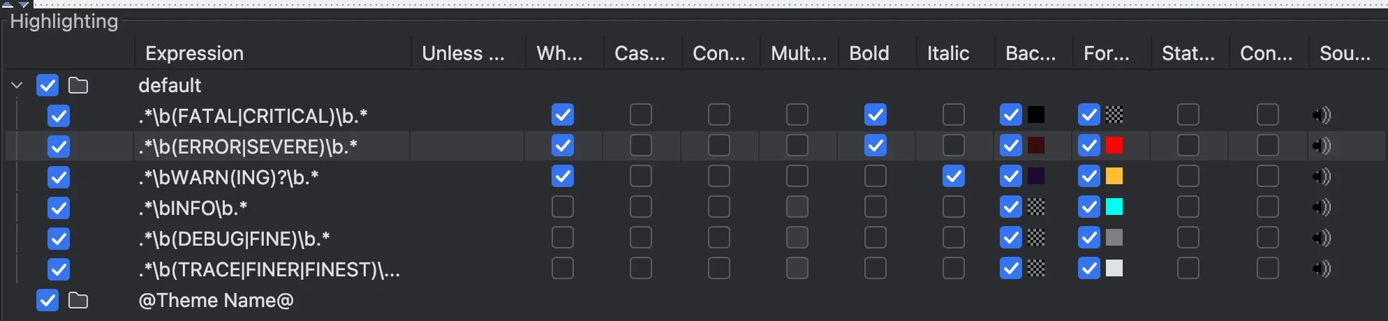 终端不同级别的日志配置展示不同颜色。